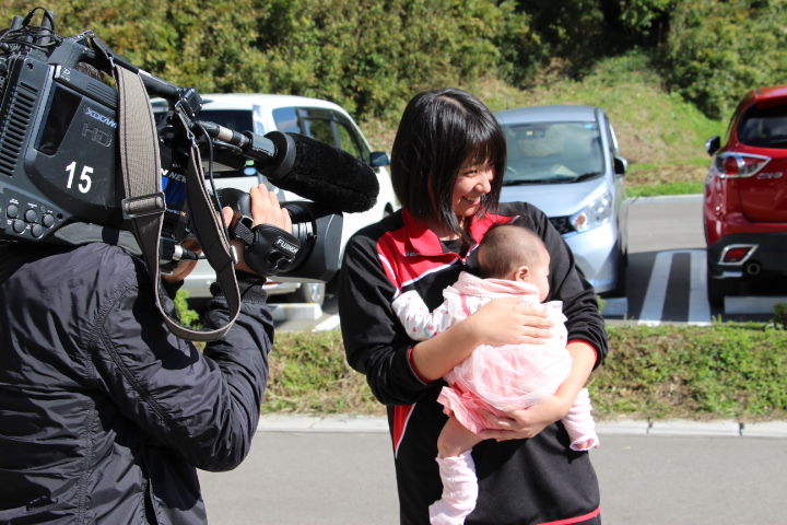 先ほどとは別のテレビユー福島のカメラを向けられながら赤ちゃんを抱っこしたり、