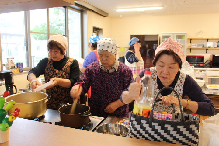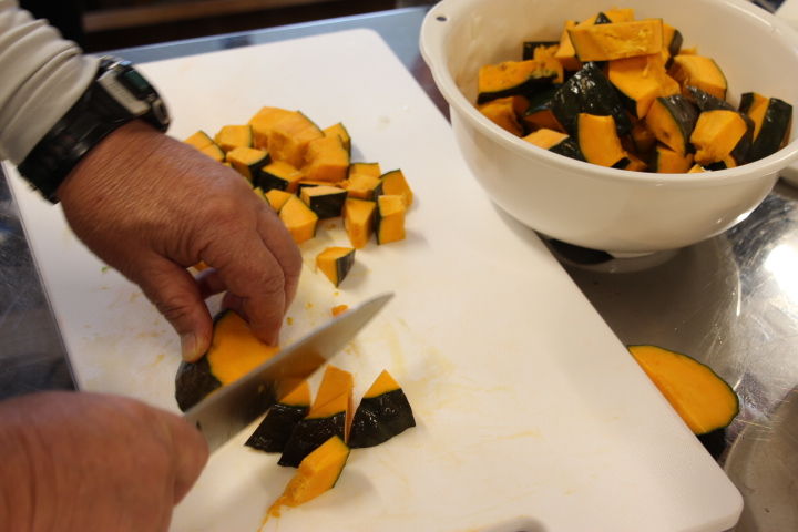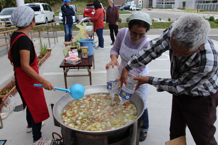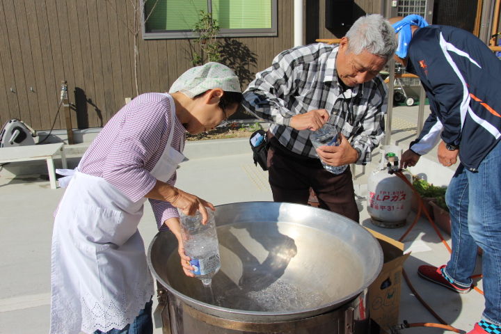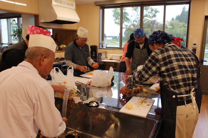 石倉団地の皆さんと収穫祭に向けての調理開始です。