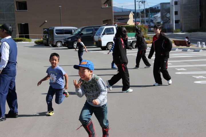グリーンキャンバスの子ども達と安達高校生がおにごっこをしながら走り回ったり、