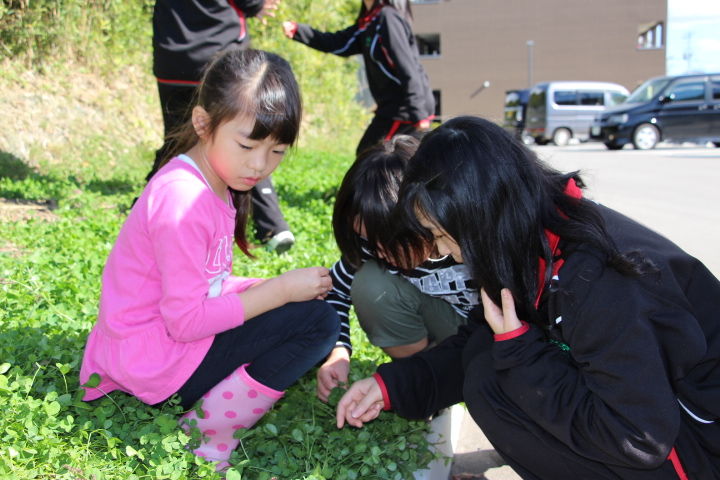 四葉のクローバーを探しているのかと思いきや虫を捕まえていたり、