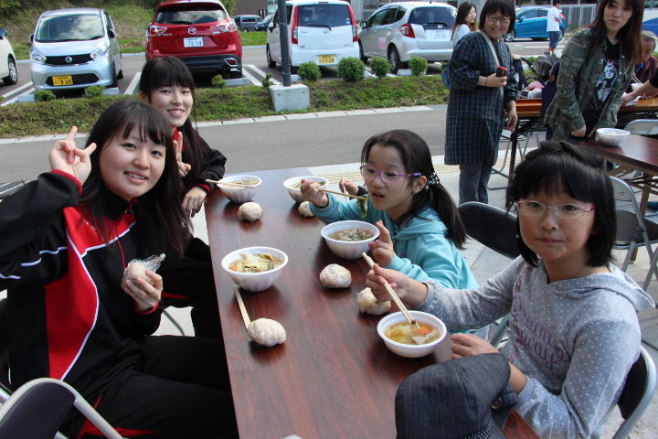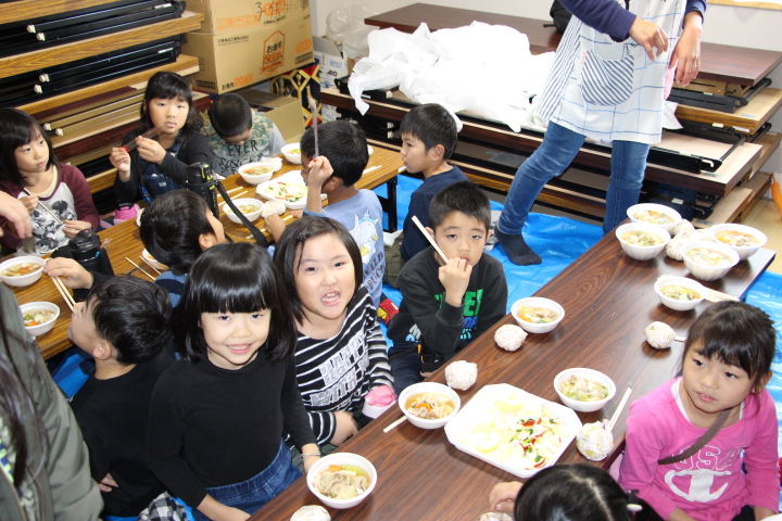 まずは、みんなで芋煮に舌鼓。大人も