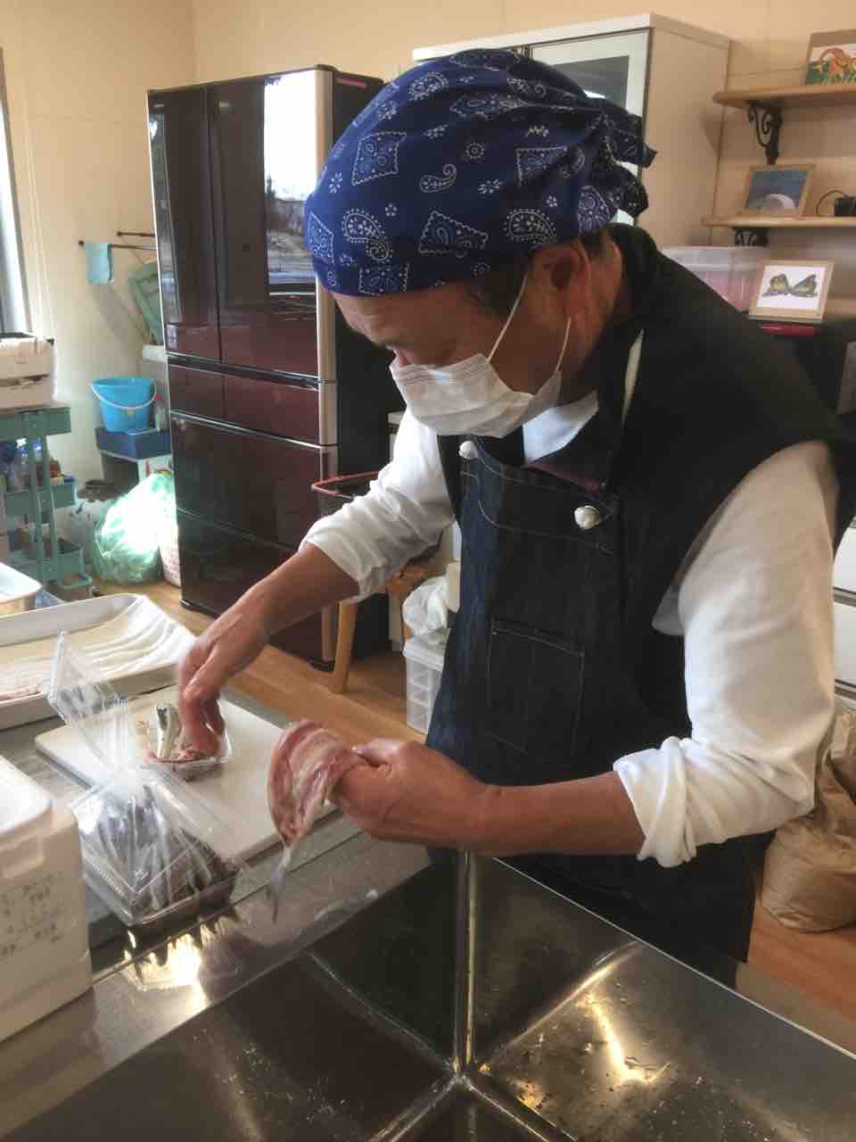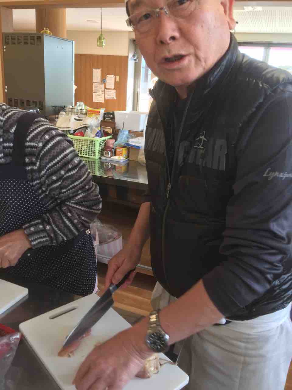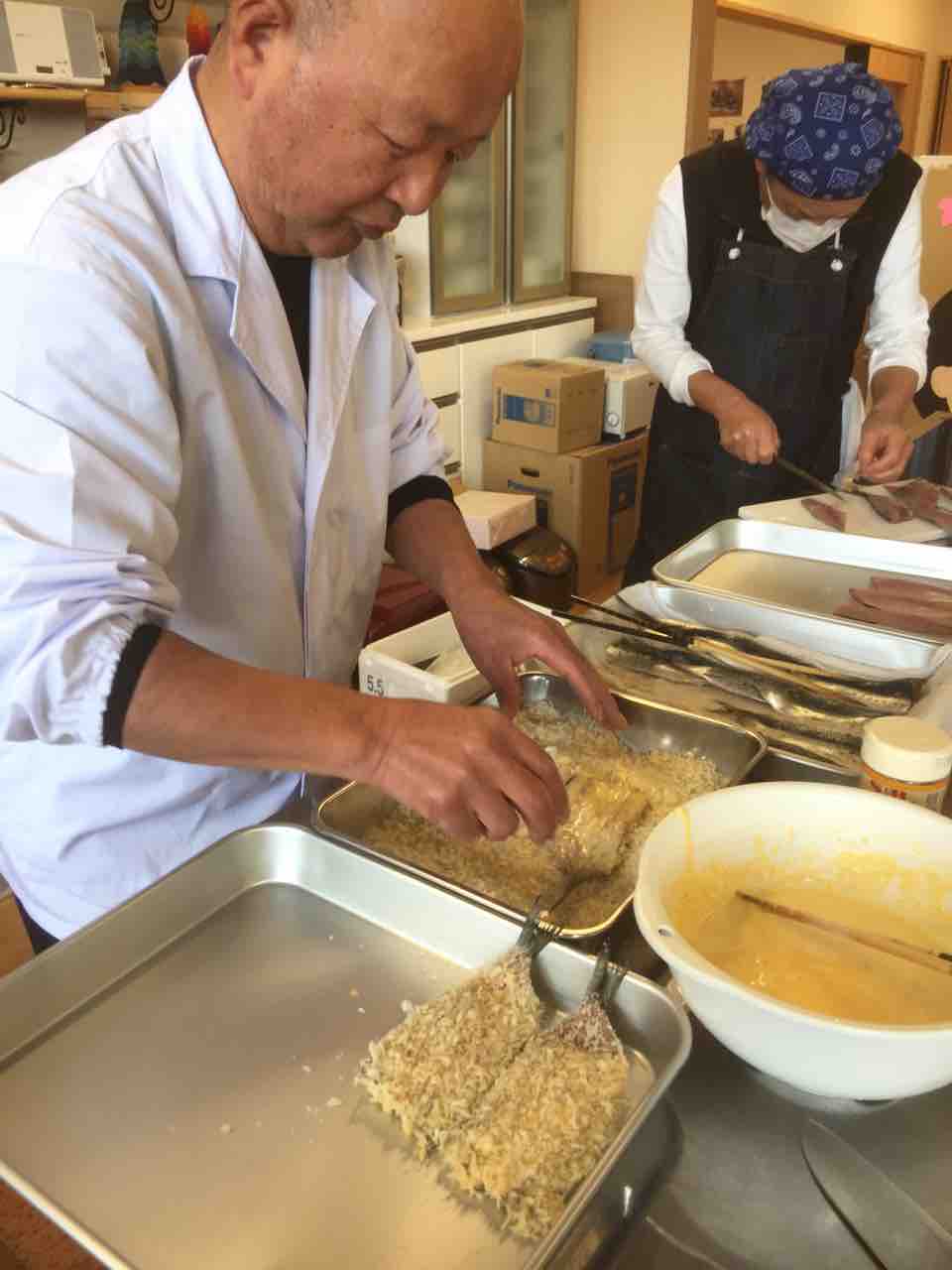 見てください。イワシやアジを綺麗にさばいております。やはりこの腰の角度からしてこの技術が生まれたのでしょうか。